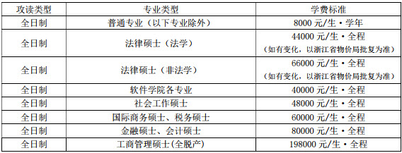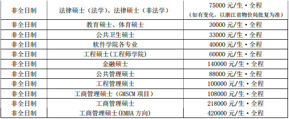(一)學(xué)費(fèi):根據(jù)財(cái)政部、的相關(guān)文件精神,所有納入招生計(jì)劃的碩士研究生都要繳納學(xué)費(fèi),經(jīng)浙江省物價部門核準(zhǔn),我校2019年碩士研究生學(xué)費(fèi)標(biāo)準(zhǔn)如下: